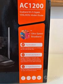 Tenda V12 Modem Router WiFi, Wireless AC1200 Dual Band VDSL/ADSL Router, 300Mbps/2.4GHz and 867Mbps/5GHz, 4 Gigabit Ports.