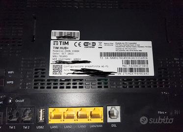 Vendo modem TIM HUB+ (modello ZXHN H388X), uno dei modelli più recenti e performanti di TIM. È un modem certificato Wi-Fi 6, ideale per connessioni in Fibra e DSL, che offre prestazioni eccellenti e una copertura stabile per la casa o l'ufficio. Il modem e usato ma in condizioni ottime, funziona perfettamente, è già stato resettato alle impostazioni di fabbrica, pronto per essere configurato sulla vostra linea. Specifiche Principali: • Modello: ZXHN H388X (TIM HUB+) • Wi-Fi 6 CERTIFIED: Connessioni wireless ultra-veloci e stabili per tutti i tuoi dispositivi. • Porte Posteriori: • 4x Porte Gigabit LAN (di cui una configurabile come WAN) • 1x Porta DSL (RJ11) • 1x Porta Fibra (SFP, integrata) • 2x Porte Telefoniche (RJ11) per la fonia VoIP • 1x Porta USB 2.0 (per stampanti, dischi, etc.) • Pulsanti: Reset, On/Off, Wi-Fi, WPS • Alimentazione: 12V 2.5A • Data di Produzione: Ottobre 2023 Incluso nella vendita: • Modem TIM HUB+ (ZXHN H388X) • Alimentatore originale