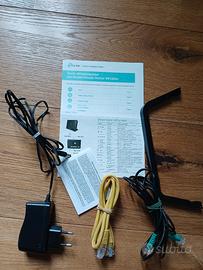 Modem router TP-Link Archer VR1200v in ottime condizioni. Ideale per connessioni Fibra (VDSL/FTTC) e ADSL. Caratteristiche principali: Wi-Fi Dual Band: Velocità fino a 1200Mbps (300Mbps su 2.4GHz e 867Mbps su 5GHz). Supporto VoIP: 2 porte telefoniche per collegare telefoni fissi. Porte Gigabit: 4 porte LAN per la massima velocità via cavo. Porta USB: Per condividere file o stampanti in rete. Il modem è completo di tutto: scatola originale, alimentatore, cavo Ethernet, cavo telefonico e manualistica. Compatibile con: TIM, WindTre, Fastweb, Vodafone, Tiscali, TP-Link, Wi-Fi, Router, Access Point.