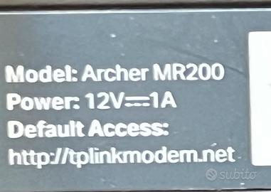 Vendp Model TP-Link Archer Mr200 causa inutilizzo acquistato su amazon. Perfettamente funzionante senza scatola.