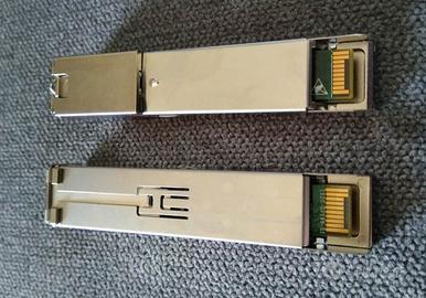 Sono disponibili anche due moduli SFP per il collegamento fibra e i relativi cavi in fibra ottica: