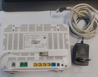 Modem ZYXEL Home&Life HUB per accesso a internet ADSL fino a 24 Mbps e Fibra fino a 1 Gbps, access pointer WIFI doppia frequenza 2,4 e 5 GHz, telefonia Voip. Vendo usato per passaggio ad altro operatore telefonico.