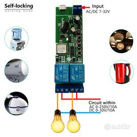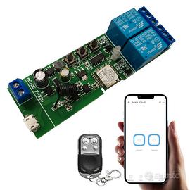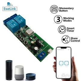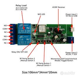 Modulo relè wireless WiFi a 2 canali Relè momentaneo/a scatto per app Ewelink con telecomando RF 433 MHz compatibile con comandi vocali Alexa e Google Assistant.