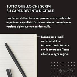 Moleskine Smart Writing Set, Smart Notebook con Smart Pen Inclusa. Tutto ciò che scrivi su carta diventa digitale attraverso l'app Moleskine Notes. Leggi nelle foto tutti gli utilizzi. Ottimo stato, ritiro su Roma. Prezzo 165€