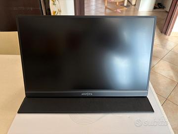 Monitor portatile 15 pollici Arzopa . Uno strumento fondamentale per un manager o studente che ha bisogno di un secondo monitor ben trasportabile . Collegabile con cavo usb c che lo alimenta oppure con cavo hdmi mini . Utile per estendere monitor o duplicare . Si interfaccia facilmente con mac e windows oltre che con cellulari e tablet . Usato pochissimo forse 10 volte perche ne ho due.