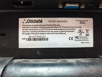 Monitor Olidata di colore nero. - Ingresso VGA. - cavo VGA - cavo alimentazione