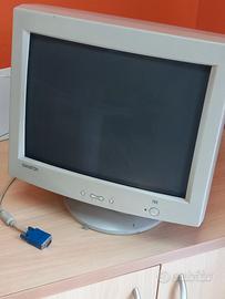 Monitor 17 pollici CRT anno di produzione 2001 Perfettamente funzionante, colori brillanti e immagini nitide, completo di cavo di alimentazione e cavo di collegamento al PC. Si preferisce ritiro a mano