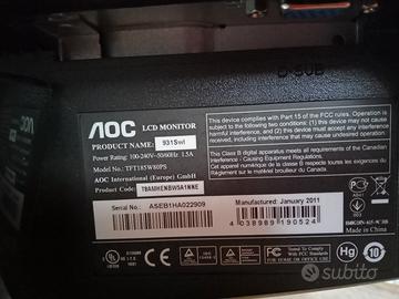 Vendo monitor AOC modello 913Swl, perfettamente funzionante, con cavo di alimentazione , senza scatola, né libricino istruzioni.