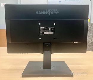 Monitor HANNspree HE195ANB Come nuovo, articolo fatturabile. Più pezzi disponibili, sconto quantità. Ritiro a mano, possibile spedizione. Caratteristiche principali: Dimensione schermo: 18.5" (47 cm) diagonale. Risoluzione: 1366 x 768 WXGA. Rapporto d'aspetto: 16:9. Contrasto: 600:1 (tipico), 10.000.000:1 (attivo). Luminosità: 200 cd/m². Tempo di risposta: 5 ms. Angolo di visione: 90° orizzontale, 65° verticale. Superficie del pannello: Anti-riflesso. Colori del display: 16.7 milioni. Retroilluminazione: LED. Connettività: Ingresso video: D-Sub (VGA). Frequenza massima di visualizzazione: 1366 x 768 @ 60Hz. Montaggio e design: Montaggio VESA: 75 x 75 mm. Inclinazione: -5° ~ 20°. Colore: Nero con finitura testurizzata. Dimensioni prodotto: 442 x 185 x 345 mm. Peso netto/lordo: 2,5 kg / 3,4 kg. Efficienza energetica: Classe energetica: D. Consumo energetico: 11 W (modalità attiva), 0,3 W (standby), 0,2 W (spento). Consumo annuale: 11 kWh/1000h. Funzionalità aggiuntive: Modalità video: PC, Film, Gioco, ECO. Flicker Free: Sì. Lingue OSD: 12. Accessori inclusi: Cavo di alimentazione (1,5 m), cavo VGA (1,5 m)