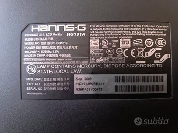 Modello HG191A 19" Widescreen Monitor Display VGA With Stand 1440x900 Black
