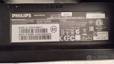 monitor philips 22 pollici fullhd ingresso vga compreso cavo alimentazione