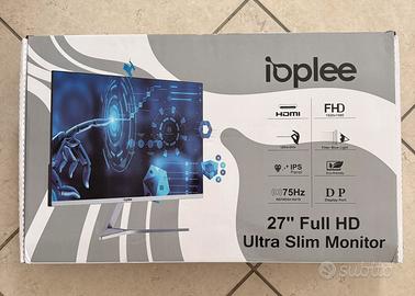 Vendo monitor da 27 pollici della Ioplee per passaggio a modello superiore. È perfettamente funzionante. Caratteristiche principali: • Schermo: 27 pollici Full HD (1920x1080). • Qualità visiva: Pannello IPS (colori brillanti e angoli di visione ottimi). • Fluidità: Frequenza di aggiornamento a 75Hz (più fluido dei classici 60Hz). • Protezione occhi: Filtro Blue Light integrato per non affaticare la vista dopo tante ore. • Connessioni: Ingressi HDMI e DisplayPort (DP). Il monitor è in condizioni eccellenti, completo di scatola originale. Ritiro a mano zona Mestre