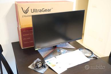 Monitor LG 27GL650 UltraGear Gaming Monitor 27" FullHD IPS HDR, 1920x1080, G-Sync Compatible e AMD FreeSync 144 Hz, HDMI 2.0, Display Port 1.4, Uscita Audio, Stand Pivot, Flicker Safe, Nero Condizioni perfette, pari al nuovo.