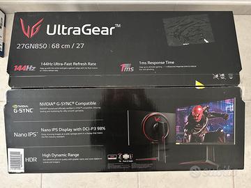 LG 27GN850 UltraGear Gaming Monitor 27" QuadHD Nano IPS 1ms HDR, 2560x1440, G-Sync Compatible e AMD FreeSync 144 Hz, HDMI 2.0, Display Port 1.4, Uscita Audio, Stand Pivot, Flicker Safe, Nero