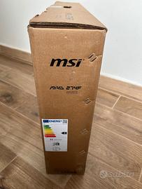 Vuoi regalare al tuo setup un ottimo monitor da gaming (200Hz di sync frequency) ad un prezzo molto competitivo. Che tu sia un gamer o semplicemente apprezzi uno schermo dalla grande ampiezza ed ottima qualita', questo MSI MAG 247f potrebbe fare al caso tuo. Il prodotto e' nuovo e arriva in imballo sigillato (le foto sono del mio personale per scopo dimostrativo). Attacco vesa 100x100 sul retro per poterlo sistemare sia su supporto o a parete per usarlo per esempio come wall screen o stream di contenuti in locali o negozi. Caratteristiche: dimensioni 27 pollici frequenza di refresh massima 200Hz supporto da scrivania cavi hdmi e tutti gli accessori inclusi (come da foto). Fatturabile per i possessori di partita iva. Garanzia di legge. Spedizione gestita dalla piattaforma di subito.it