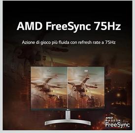 Misure con base 44x15x69, schermo antiriflesso 1920x1080, 2 porte hdmi, 1 vga, Aux, Flicker safe, AMD FreeSync 75Hz.