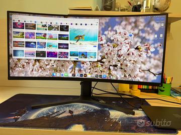 Vendo monitor 34 pollici curvo di marca Xiaomi. Dettagli tecnici dello schermo: _ QHD 3440 x 1440 formato 21:9 34". _ AMD FreeSync con refresh rate a 144 Hz e un tempo di risposta di 3 ms. _ Luminosità 400 nit. _ Raggio di curvatura schermo a R 1800. Il motivo per cui vendo questo monitor è che sono passato ad un monitor più grande in quanto sono cambiate le mie esigenze; rimane comunque un monitor tenuto in perfetto stato e di buona marca. Non presenta alcun graffio ne sullo schermo ne sulla scocca, è orientabile in tutte le direzioni come visibile nella foto che inquadra lo snodo del braccio portante, è possibile alzarlo e abbassarlo a piacimento, risultando essere comodissimo come secondo schermo oppure schermo principale di lavoro/gaming. Incluso con il monitor anche il cavo video, alimentazione e fogli di istruzioni. Il prezzo non è trattabile e consegna a mano.