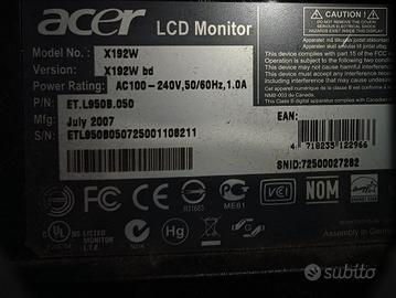 come da titolo vendo monitor acer 19 pollici modello x192w in buone condizioni per inutilizzo