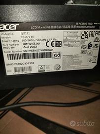 Vendo monitor Acer, 27 pollici ottimo per gaming. Nessun difetto o graffio. Lo vendo perché non ho più il PC fisso. Comprende cavo HDMI e alimentazione. Ritiro in zona, non spedisco