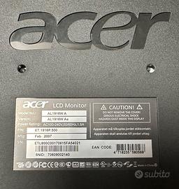 Monitor Acer mod. AL1916W, 19 pollici completo di cavo alimentazione e Vga, in ottime condizioni.