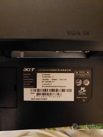 Monitor marca: ACER modello: G195HQV-LCD da 18.5" - Risoluzione massima 1366x768 - Formato schermo 16:9 - Uscita VGA. In perfette condizioni. Cavo di alimentazione e cavo vga inclusi.