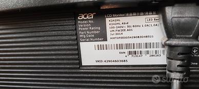 Vendo monitor Acer 24 pollici HD perfettamente funzionante