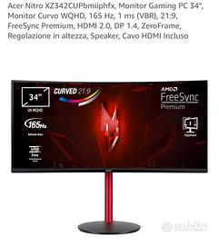 Vendo monitor Acer Nitro XZ342CUP ultrawide, da 34” WQHD. 165 Hz di refresh rate, 1ms, perfett per il gaming. Senza graffi né pixel morti, usato due mesi. Compreso di stand e scatola originale. Praticamente nuovo. Disponibile per consegna a mano zona Prato/Firenze e dintorni.