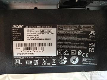 Vendo monitor Acer Nitro VG240Y bmiix 23,8″ con risoluzione Full HD (1920×1080), pannello IPS, frequenza 75 Hz e tecnologia FreeSync – ideale per gaming leggero, lavoro e uso quotidiano.