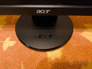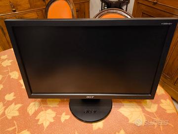Monitor per computer desktop, prodotto da Acer, di colore nero, modello V193HQV con display LCD da diciannove pollici, per una risoluzione massima di 1366 x 768 px. a 720p, completo di basetta d'appoggio e cavo VGA per il collegamento ad un computer desktop.