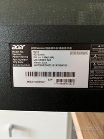 Causa cambio scrivania da lavoro sono costretto a vendere ACER VERO RL272EYIIV MONITOR, 27 ", Full-HD, 1920 x 1080 Pixel, tempo di risposta 4 ms, refresh rate 100 Hz. Utilizzato pochi mesi, perfettamente funzionante, vendo perchè necessito di uno schermo con ingombro minore.