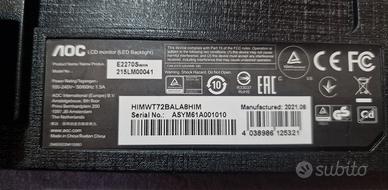 Monitor AOC da 22 pollici con risoluzione Full HD. Design elegante e moderno. - Schermo da 22 pollici. - Risoluzione Full HD (1920x1080). - Colore nero. Presa VGA e HDMI, ottime condizioni. Prezzo Trattabile...