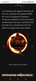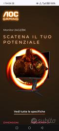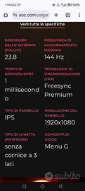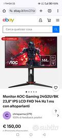 Vendo fantastico Monitor AOC modello 24G2U/BK 23,8" IPS LCD FHD 144 Hz 1 ms con altoparlanti integrati e base regolabile in altezza, consente anche la rotazione dello schermo in verticale, classe energetica E !