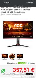 Monitor Gaming 2k 27pollici 1ms di risposta aoc curvo pc componenti fisso display port hdmi