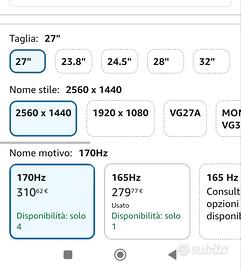 vendo monitor ASUS TUF Gaming VG27AQ1A , 27 Pollici, 170Hz, Adaptive-SYNC, IPS - DP, HDMI condizioni pari a nuovo scambio a mano