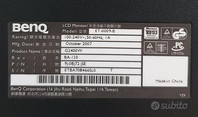 Monitor BenQ G2400W LCD da 24 pollici con risoluzione 1920x1200 (WUXGA) e connessioni DVI, HDMI e VGA, in ottimo stato perfettamente funzionante.
