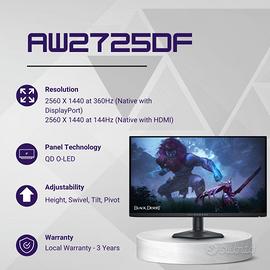 🎮 Vendo monitor da gaming Alienware AW2725DF – uno dei migliori sul mercato per performance e qualità visiva.