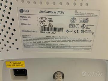 Vendo LG StudioWorks 775N, monitor CRT originale prodotto nel febbraio 2001, in stato eccellente.