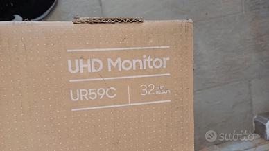Vendo monitor curvo Samsung 32" 4K UR59C, poco usato con ancora le pellicole originali attaccate e lo scatolo originale. Nessun pixel difettoso, vendo come nuovo. Regalo anche adattatore VESA.
