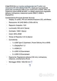 Vendo Monitor Dell 27" 4k P2721PQ quasi mai usato da mia figlia perché usa il notebook. Acquistato nel 2021 direttamente da Dell posseggo la fattura. Consegna a mano a Modena.