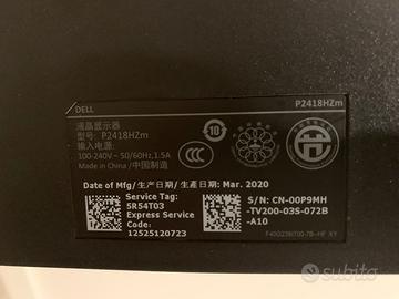 Usato ma in perfetto condizioni vendo Monitor Dell P2418HZ 24" IPS LED FHD 1080p HDMI DISPLAY VGA Webcam+Speakers 6ms come da foto