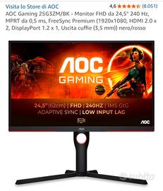 Aoc monitor da gaming 24.5” FHD 240hz. 0,5ms risposta in game..