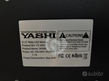 Monitor Yashi 21,5” FullHD 1920*1080 1 porta VGA 1 porta DVI 1 ingresso jack 3,5
