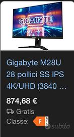Monitor Gaming 4k 144hz 1ms gigabyte trattabile