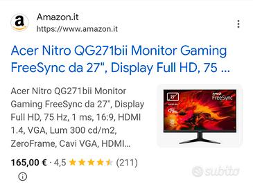 vendo monitor da gaming acer usato pochissimo, come nuovo. Specifiche nella seconda foto.