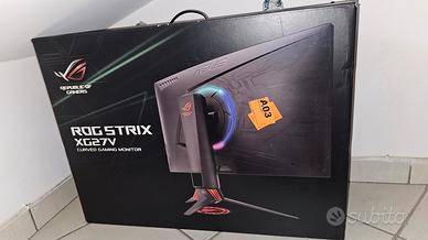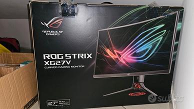 Vendo per passaggio a nuovo setup splendido monitor gaming ASUS ROG Strix XG27VQ. Il monitor è in condizioni eccellenti, trattato con estrema cura e perfettamente funzionante (come visibile in foto). È il monitor ideale per chi cerca un'esperienza immersiva grazie alla sua curvatura 1800R e alle prestazioni fluide in ambito competitivo (e-sport). ⚙️Caratteristiche Principali: Display: 27 pollici Full HD (1920x1080) con curvatura 1800R. Velocità: Refresh rate a 144Hz e tempo di risposta di 1ms (ELMB) per eliminare ghosting e lag. Tecnologia: Supporto Adaptive-Sync (FreeSync) per sessioni di gioco senza tearing. Estetica ROG: Illuminazione ASUS Aura RGB sul retro e proiezione del logo ROG personalizzabile alla base. Connettività: DisplayPort, HDMI e Dual-link DVI-D. Ergonomia: Stand super regolabile (altezza, rotazione e inclinazione). Incluso di scatola originale e cavetteria. Disponibile per qualsiasi prova, prezzo trattabile se veramente interessato. Spedizione ovunque🌏