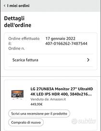 LG 27UN83A Monitor 27" UltraHD 4K LED IPS HDR 400, 3840x2160, AMD FreeSync 60Hz, HDMI 2.0 (HDCP 2.2), Display Port 1.4, USB-C, USB Hub, Speaker Stereo, Uscita Audio, Flicker Safe, Stand Pivot, Bianco.