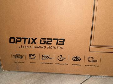 Vendo monitor gaming MSI Optix G273 da 27 pollici, perfettamente funzionante e in ottime condizioni. Ideale per gaming competitivo grazie alle sue ottime prestazioni: Display 27” Full HD Pannello IPS (ottimi colori e angoli di visione) 165Hz di refresh rate 1ms tempo di risposta Compatibile NVIDIA G-SYNC Ampia gamma colori (Wide Color Gamut) Modalità Night Vision Il monitor è stato usato con cura, senza graffi evidenti sullo schermo. Vendo con scatola originale (come da foto). Perfetto per gaming FPS, competitivi e uso quotidiano. Consegna a mano o spedizione a carico dell’acquirente. Per qualsiasi domanda scrivimi pure!