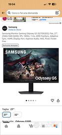 monitor samsung odyssey G5 flat 27” 1440p 180hz ips ancora in garanzia estesa comprata a parte anche per danni accidentali come cadute urti versamento di liquidi ecc. copertura garanzia fino a ottobre 2026. includo anche la lampada sul monitor dal valore di 30€. è perfetto nessun pixel bruciato o altro.