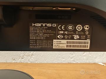 🖥️ Monitor Hanns·G HL195 – 19" LCD Vendo monitor Hanns·G HL195ABB in buone condizioni e perfettamente funzionante. Caratteristiche principali: Schermo 19" LCD Risoluzione 1366×768 Ingresso: VGA (D-SUB) Base rotonda stabile Compatibile VESA Condizioni: usato, funzionante. Prodotto del 2011, segni normali di utilizzo. Prezzo: 40€ – trattabile Ritiro a mano preferito. Spedizione possibile a carico dell'acquirente.