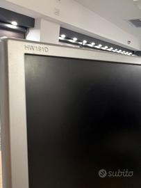 Monitor Hanns·G HW191D 19" Wide – Affidabilità e Versatilità Se stai cercando un monitor solido, affidabile e perfetto per un setup da ufficio, studio o come secondo schermo per aumentare la tua produttività, l’Hanns·G HW191D è la scelta ideale. Questo monitor LCD da 19 pollici in formato widescreen combina un design pulito ed elegante (finitura silver/black) con prestazioni costanti nel tempo. Grazie al suo formato 16:10, offre uno spazio verticale maggiore rispetto ai classici monitor 16:9, rendendolo perfetto per la lettura di documenti, la navigazione web e l'editing di fogli di calcolo. La qualità costruttiva europea (Assembled in Czech Republic) garantisce una robustezza superiore ai modelli economici attuali. Caratteristiche Tecniche Principali: • Marca: Hanns·G • Modello: HW191D (Codice modello: HSG1033) • Dimensioni Schermo: 19 Pollici Widescreen • Risoluzione Nativa: 1440 x 900 pixel (WXGA+) • Rapporto d’aspetto: 16:10 (Ideale per uso ufficio/produttività) • Tecnologia Display: LCD TFT Active Matrix • Ingressi Video: * 1x DVI-D (Digitale per una qualità d'immagine superiore) • 1x VGA (Analogico per massima compatibilità con PC datati) • Audio Integrato: Altoparlanti stereo incorporati (Ingresso Line-In) • Tempo di Risposta: 5ms (Ottimo per ridurre l’effetto scia nei video) • Luminosità: 300 cd/m² • Rapporto di Contrasto: 700:1 • Montaggio VESA: Supportato (per bracci da scrivania o fissaggio a muro) • Data di Produzione: Luglio 2008 • Certificazioni: Energy Star, CE, FCC, TCO'03